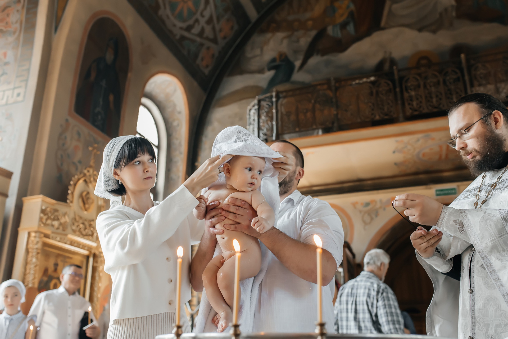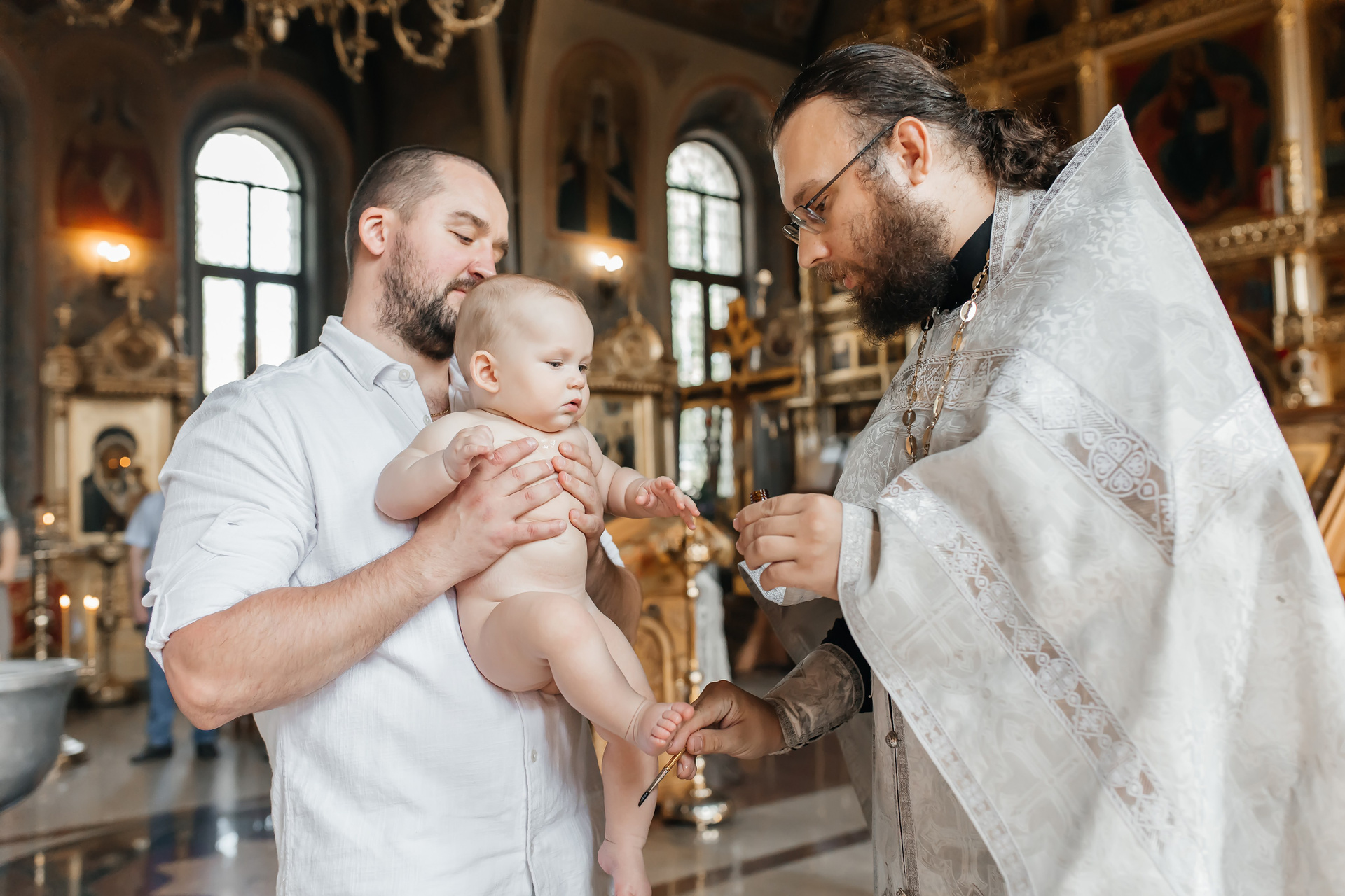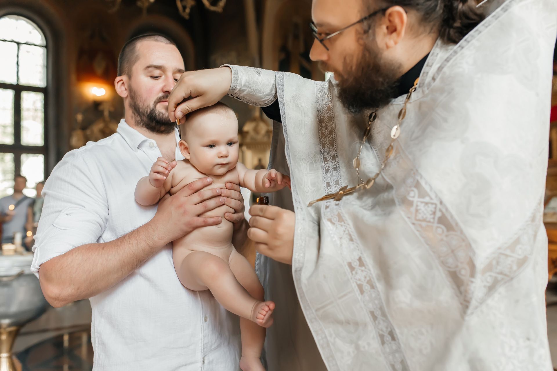 Гордею на момент крещения - 3 года. Возраст очень интересный. Ему было все очень любопытно.