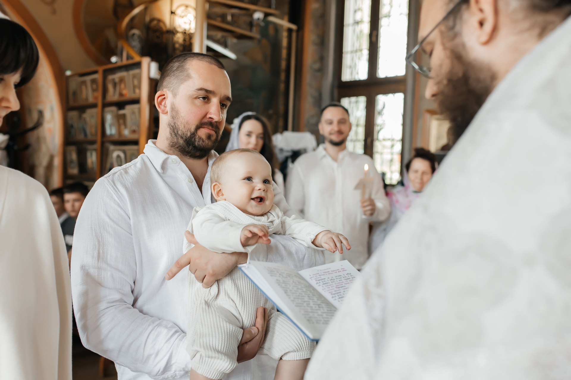 Жизнерадостная малышка Ксюша нам подарила столько улыбок в этот день. Крещение проходит в крестильной комнате....